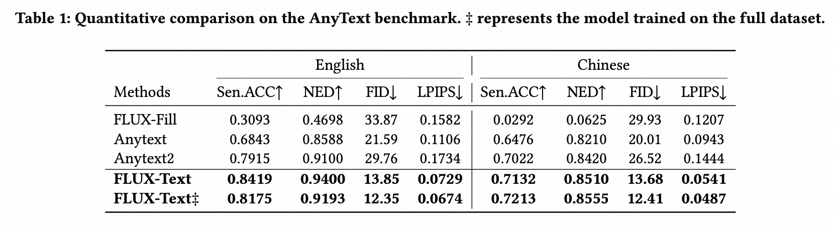 | FLUX-Text-512 | 512*512 | 34G | 0.8419 | 0.7132 | π€ HuggingFace |