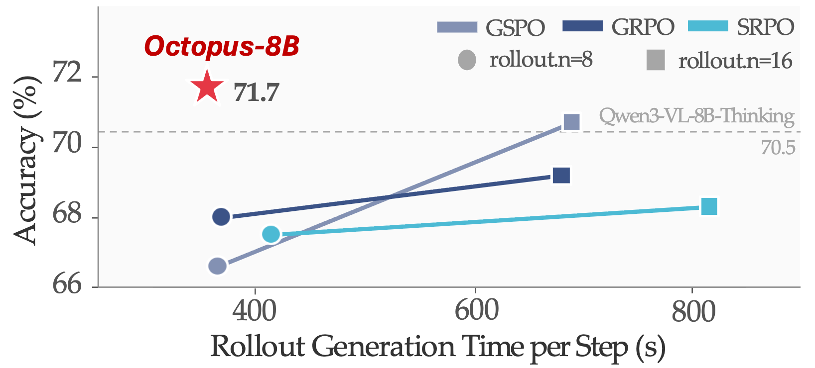 prompt = "The accuracy gap between the Octopus-8B and the Qwen3-8B-VL-Thinking model is?"