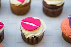 Cream muffins with lips. Muffin with cream and pink lips Royalty Free Stock Photography